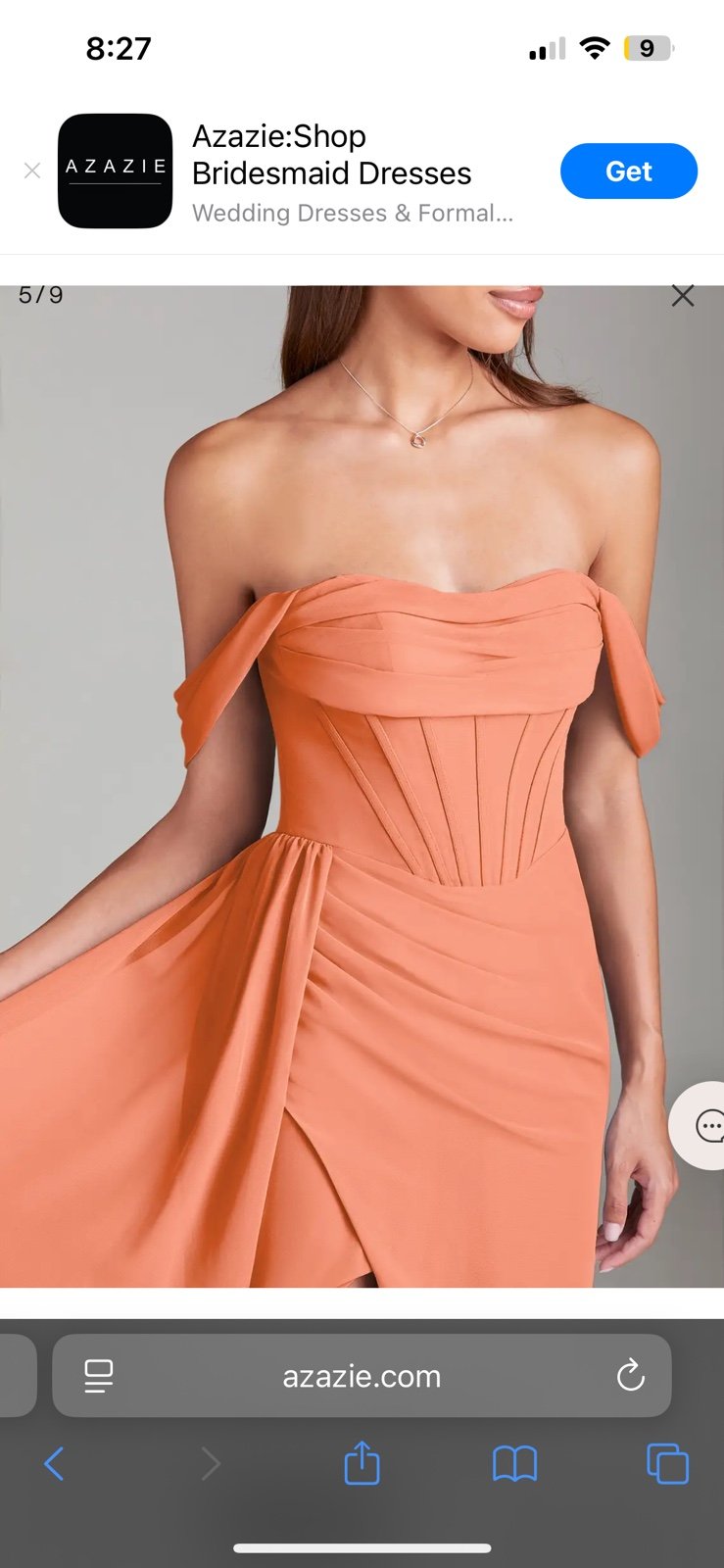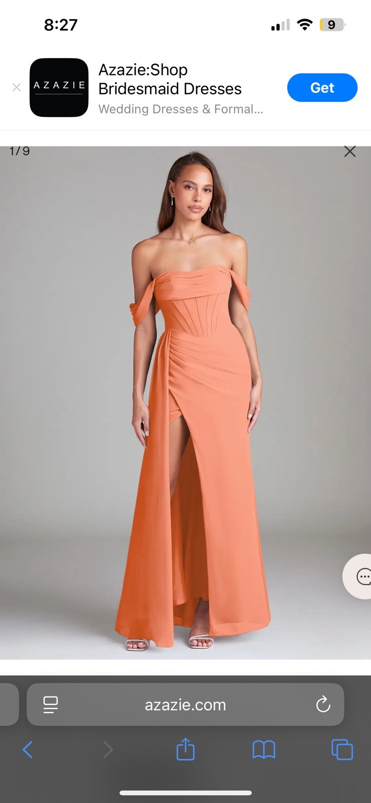 Selling a gorgeous Azazie bridesmaid/formal dress in a warm terracotta/coral shade.