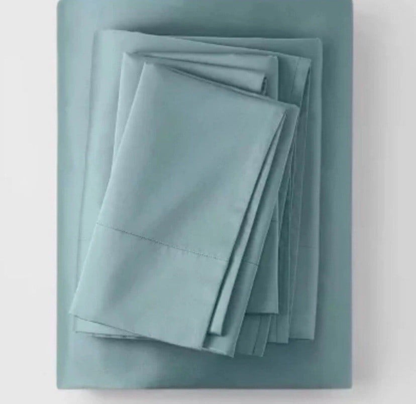 Elevate your bedroom with the CASALUNA Thread Count Washed Supima Sateen Light Teal Solid Sheet Set. This high-quality set includes king-sized sheets that are perfect for a comfortable and stylish bedding solution. The soft and luxurious sateen fabric is made from premium Supima cotton, and the light teal color adds a touch of elegance to any bedroom decor.