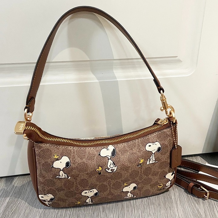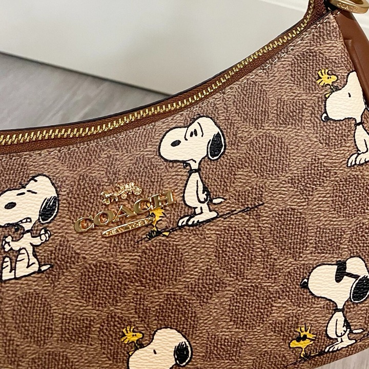 COACH x PEANUTS Teri Shoulder Bag Signature Canvas Snoopy Print CBJ88 New