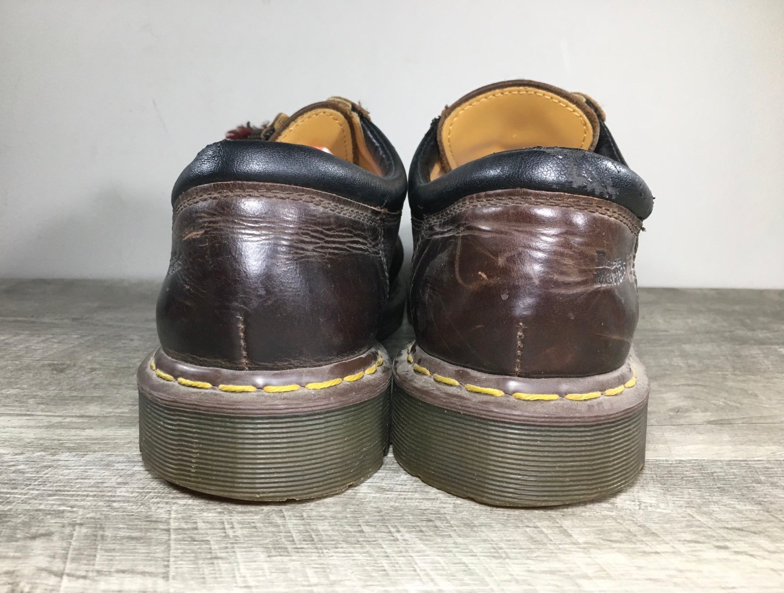 Up for sale is a good condition pair of Docs Dr. Martens 8053 Arc Crazy Horse Leather Platform Mens Shoes. Size UK 13 US 14. Soft toe. Leather uppers. Rubber soles. From smoke-free home. Clean inside and out. Very well built and sturdy. Approximate Outside Dimensions: 13.5 inches heel to toe by 4.75 inches across the ball of footwear by 1.5 inches tall heels.