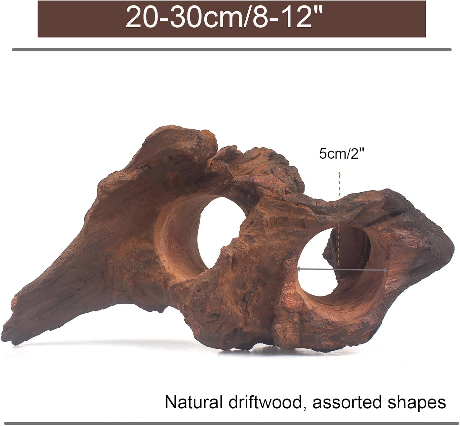Why this driftwood? Naturally porous wood forms tunnels and cavities that fish love to explore. Each piece is hand picked and size graded for easier aquascaping and layout planning.Two size options: 20~30 cm (8~12") / 30–40 cm (12~16")Material: Natural hardwood, no paint or resinUse: Aquarium hardscape, shrimp/planted tanks, terrarium décorHow to Prepare Your Driftwood (Rinse–Boil–Soak):Rinse and brush the surface under running water.Boil for 30–60 minutes to help remove trapped air and surface tannins.Soak in fresh water for several days; change water daily until the wood sinks and the water color lightens.Notes: Tannins may tint water tea-color at first—this is natural and often welcomed in blackwater biotopes. Each piece is one-of-a-kind; photos show typical shapes only. Notes: Because this is natural driftwood, each piece is unique. Photos show examples only; the pieces you receive will vary in shape, color, and grain, but will fall within the stated size range. Always pre-soak/boil before use.