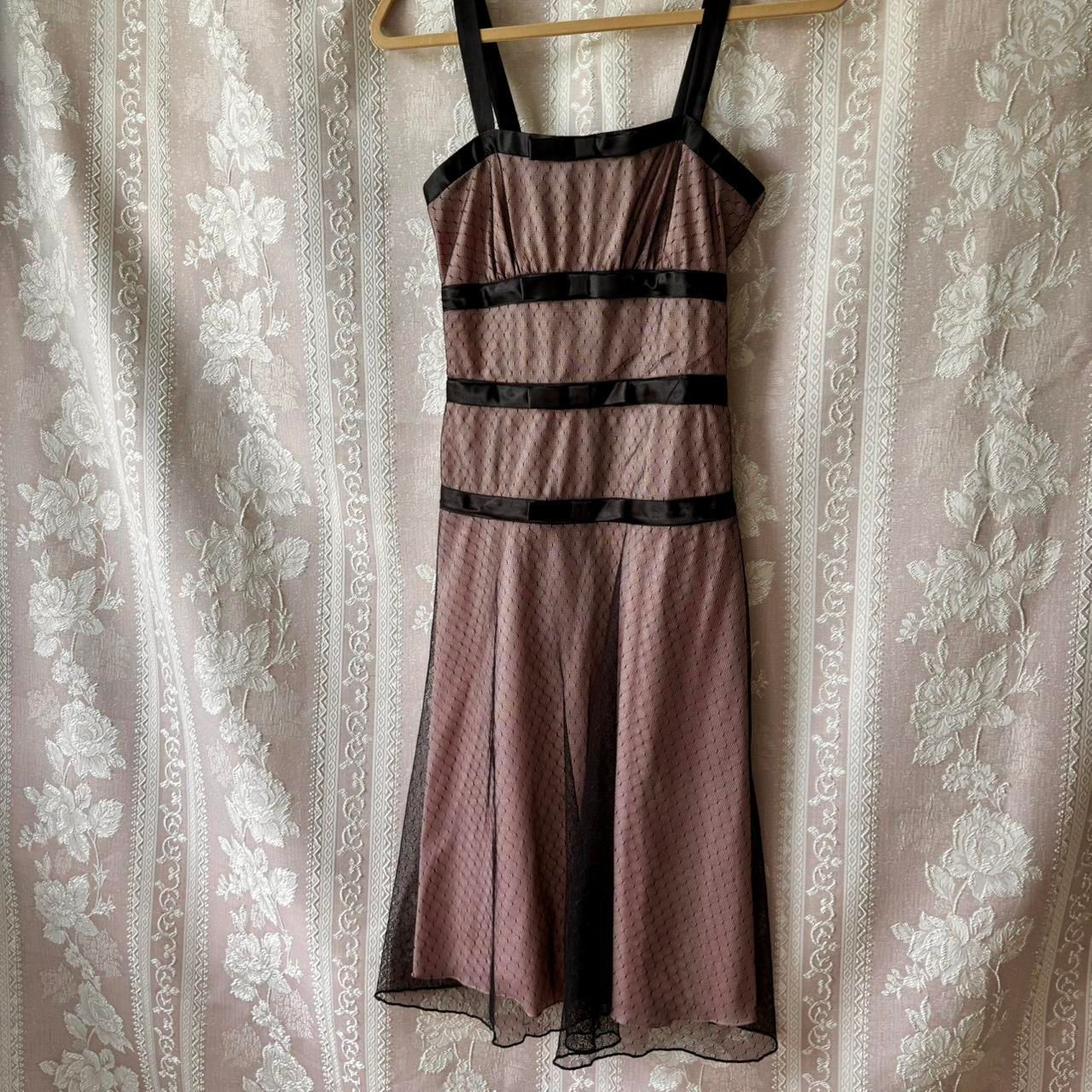 Really pretty vintage Fredericks of Hollywood black mesh overlay strappy dress with bows. Blush pink lining. Satin straps. Zipper in back. Its so beautiful! Made in USA
