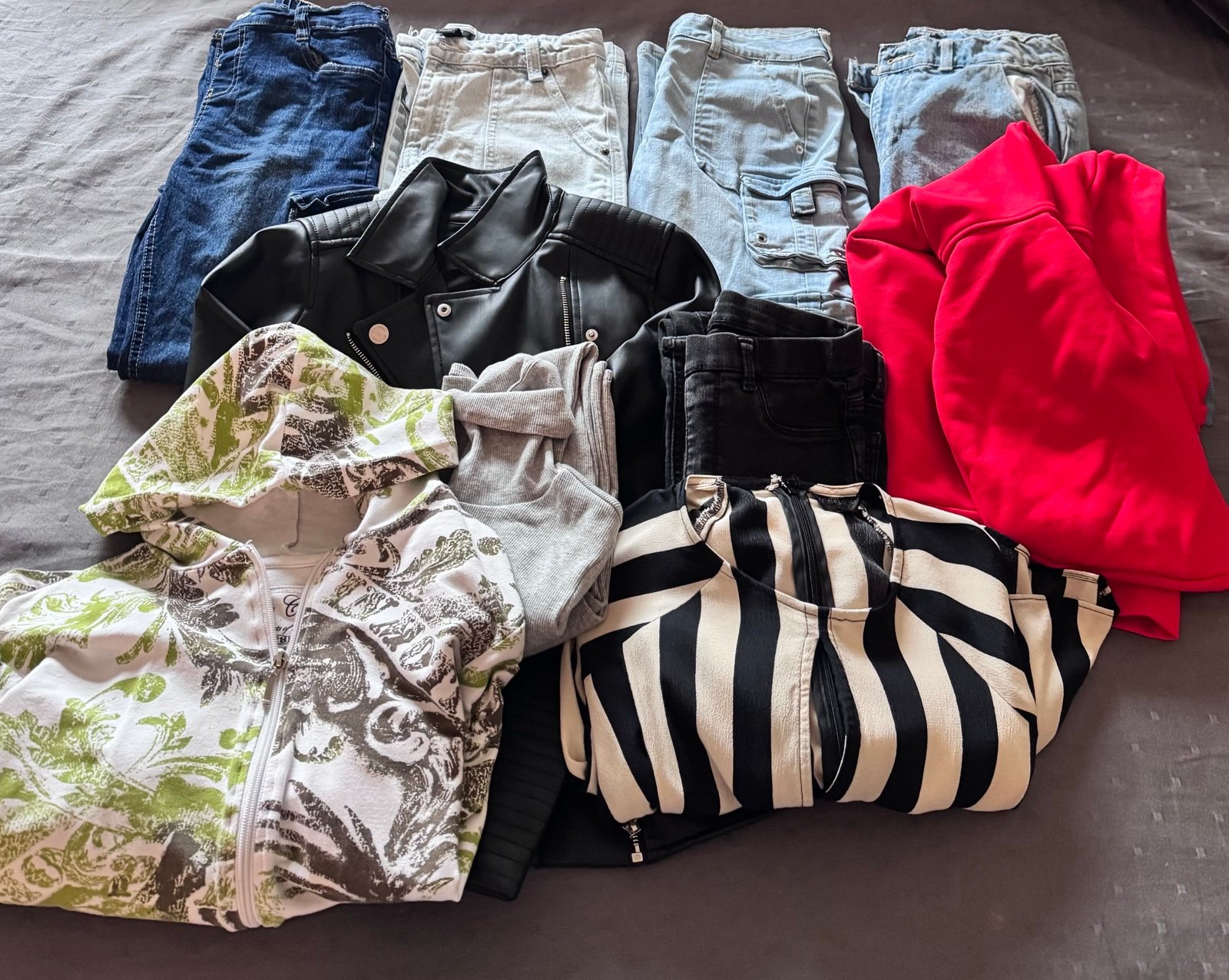 Girls 10 Piece Clothing Lot Size 11/12. Most in good condition. However, there is one of the jeans that has yellow stains and the dress has a pink stain and is missing the hook at the back. Please see pictures. Selling as is.