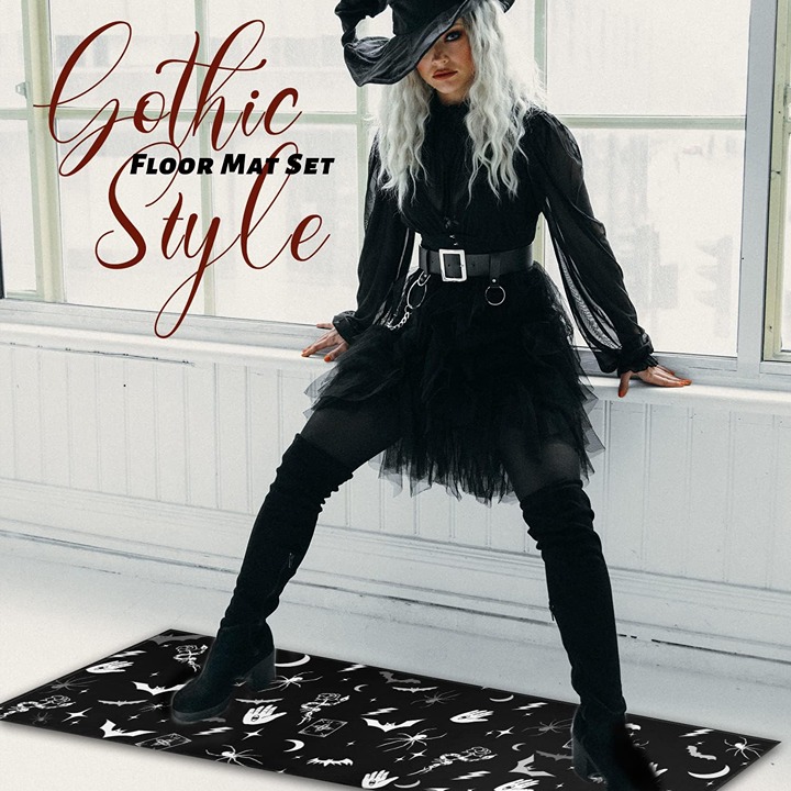 Goth Rug: These gothic spooky mats are suitable for all seasons spring/winter/fall/summer rugs, printed with stylish gothic art patterns, and show your taste and personality. Especially suitable as gothic black decor, witchy rug, black kitchen mat, blue kitchen mat, kitchen fall rugs, kitchen rug gothic, gothic kitchen decor set, black runner rugs, gothic bathroom decor, witch rug, gothic decor for kitchen.