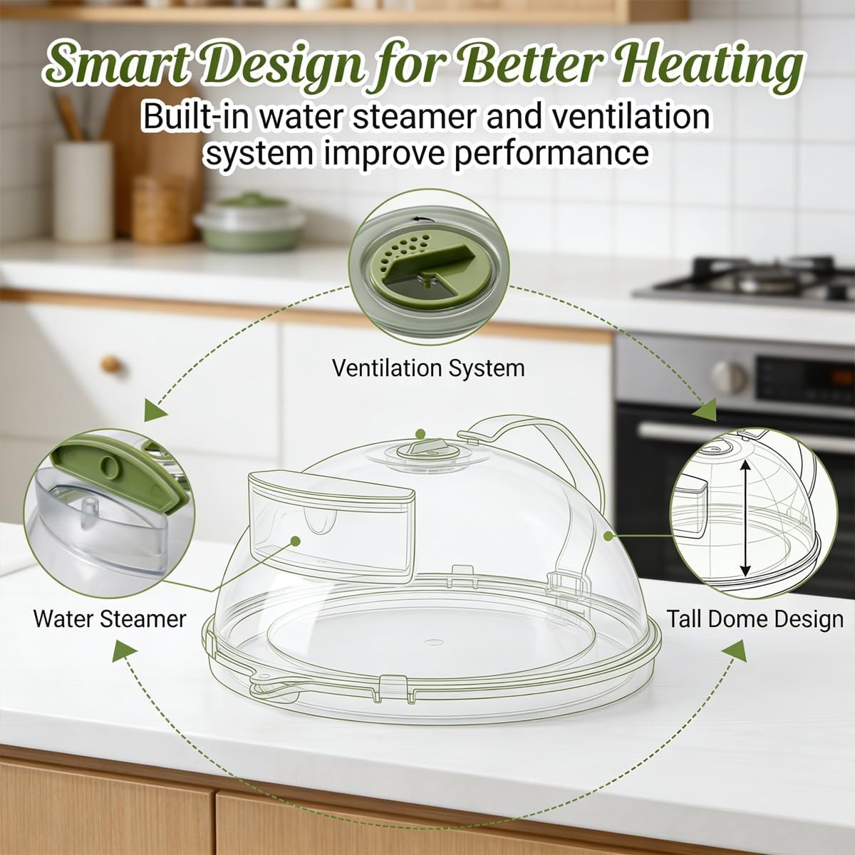 Specifications:Name: Microwave Splatter CoverSize: 10.24*4.33 in / 26*11 cmColors: Green, WhiteMaterial: PlasticDesign: with Water Storage Box, Handle, VentSuitable for: Kitchen Essentials GadgetsPackage Including:1*Microwave Splatter Cover2*Hot Plate GripperAfter-sales Service:If you have any questions, please email us. Thank you for your understanding and wish you a happy shopping!