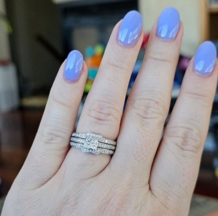 New. 14k white gold wedding set includes engagement ring and enhancer ring. Stamped 14k. Size 7. Sizeable by a jeweler. Engagement ring sits securely in the enhancer ring. Made to be worn together. See all pics for more information. Just the enhancer costs over twice the amount I'm selling the set for. Absolutely amazing and great deal on a wedding ring set!
