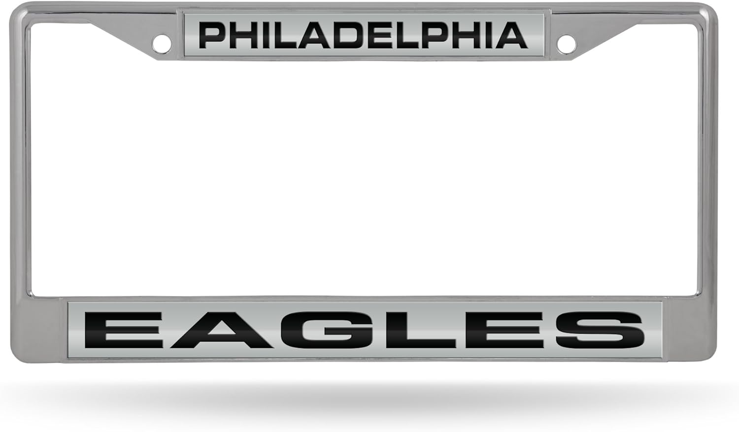 Showcase your team spirit when you're on the road with this officially licensed NFL laser chrome license plate frame from Rico! The 6-inch x 12-inch metal frame is decorated in the team colors and designed with laser-cut acrylic team inserts at the top and bottom.