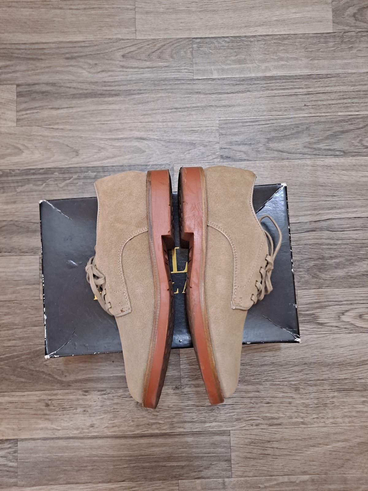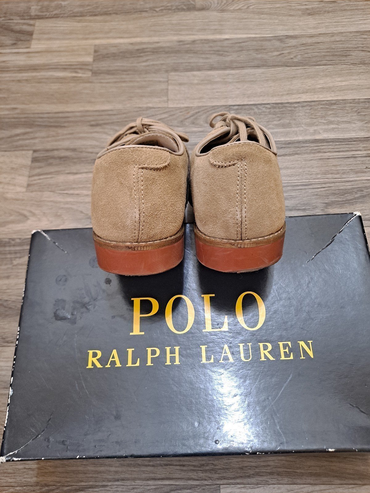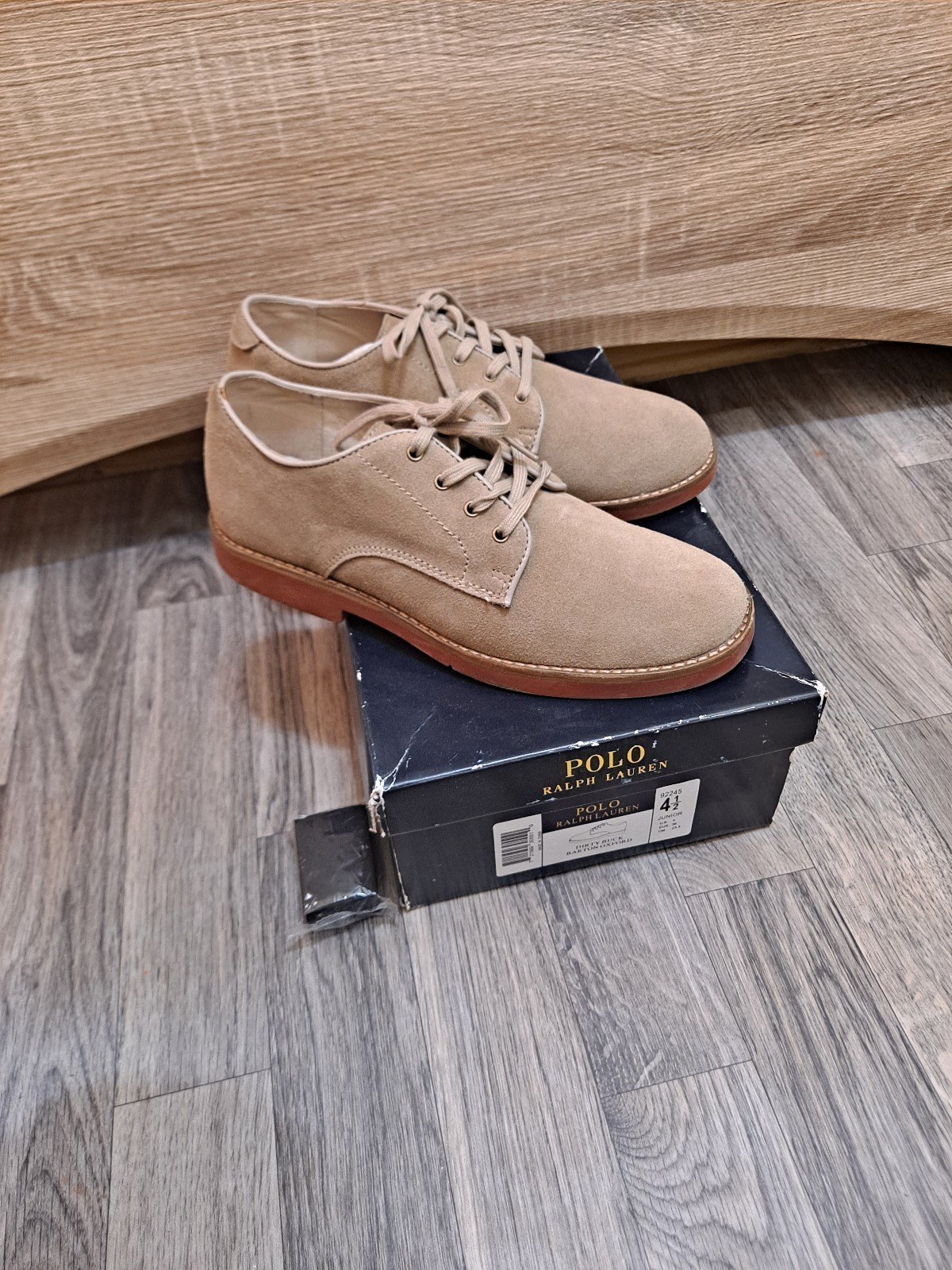 Polo R.L taupe Oxford shoes in a size: 4.5, for your little gentleman. These shoes can be dressed up or down. Worn once before they were outgrown. Great condition, except there is a bit of glue around the edge by the ankle (see last pic). Box Included. Feel free to bundle. Coming from a clean pet smoke-free home.