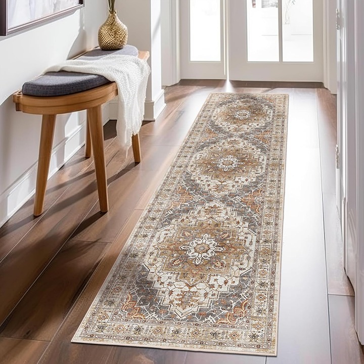 Easy To Maintain And Clean: This retro low-pile floor carpet can be vacuumed or used for daily cleaning with a broom and burlap to keep dust and debris out of the fibers, or a washing machine for deeper cleaning. This hallway floor mat features premium fiber locking technology that has been machine tested many times and proven to withstand frequent machine washes without warping, shedding, and without fading.
