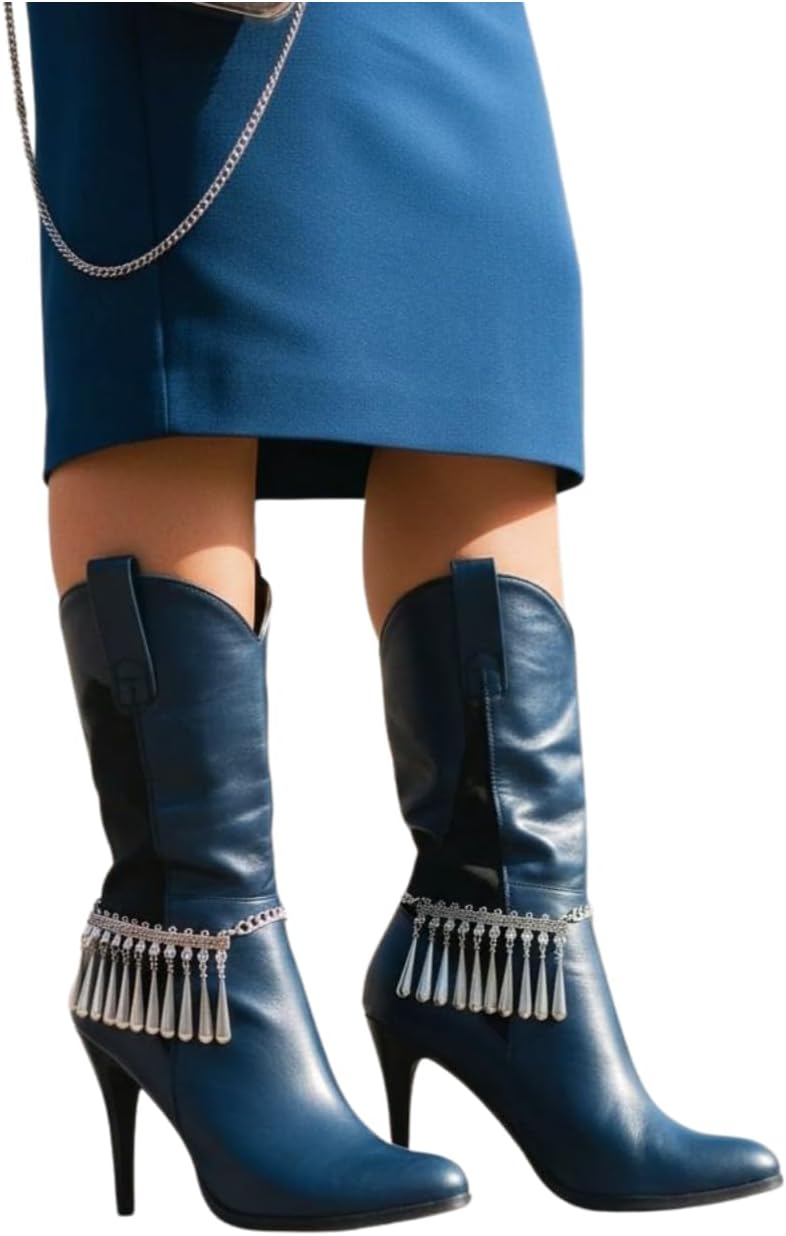 BC243 This is the accessory version of a great haircut: everything looks more intentional after. These silver-tone boot chain anklets add long drop fringe dangles that swing with each step—perfect for street style looks, travel outfits, and casual days that accidentally turn into “let’s go out” nights. Adjustable extender links (approx. 11–15 in) let you position the chain for your favorite boot height. Keep a little drape so the dangles hang cleanly and the chain stays protected. Pair set included. Handmade in the Usa.