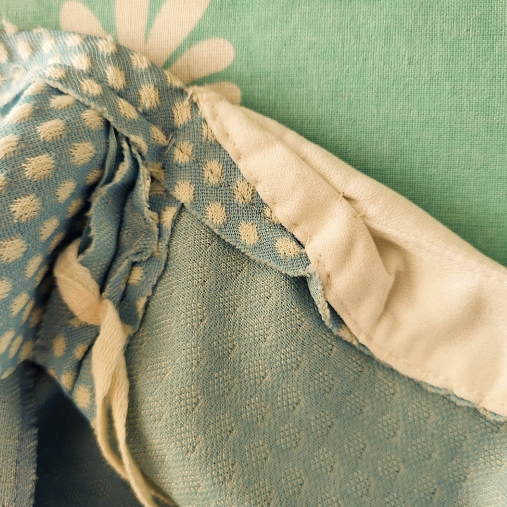 Upcycled 198 Union-made in the USA by the ILGWU (International Ladies Garment Workers Union), dating this sweet number to the early 1970s.