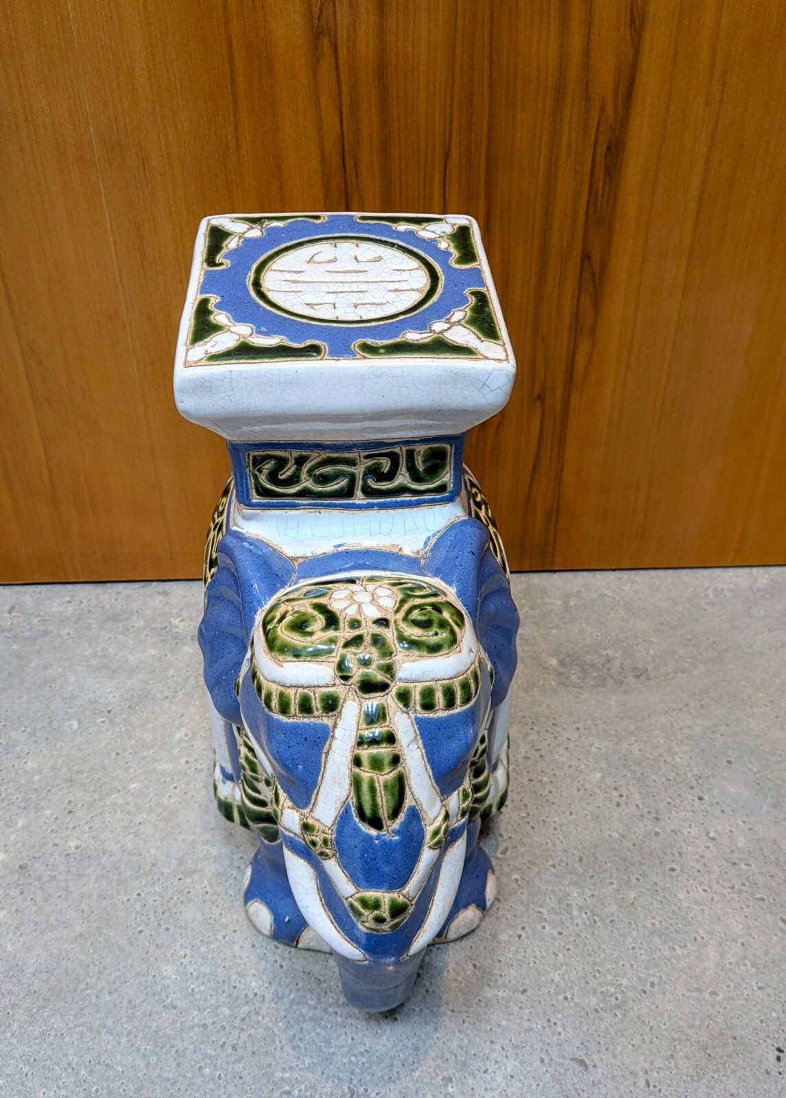 Traveling Man Treasures Curiosity Vault is selling this hand-painted ceramic Elephant plant stand in good vintage condition with no breaks or chips (there are signs of normal wear). This stand can be used indoors or outside and can hold a small plant or act as a standalone decor piece.