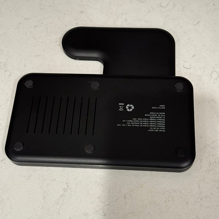 The Waitiee Wireless Charger 3 in 1 is a versatile charging station that supports fast charging up to 15W. It is compatible with various brands including Apple, Samsung, Huawei, and Xiaomi. The charger features a sleek black design, made from durable plastic, and includes a magnet mounting type. It has one port and operates at a voltage of 12V. The product comes with a 3 ft charging cable and is equipped with LED indicators. This item is in open box condition, meaning it is in excellent, new condition with no wear, but may be missing original packaging. Perfect for desktop use, this charger supports Qi wireless charging standard and is ideal for charging multiple devices simultaneously.