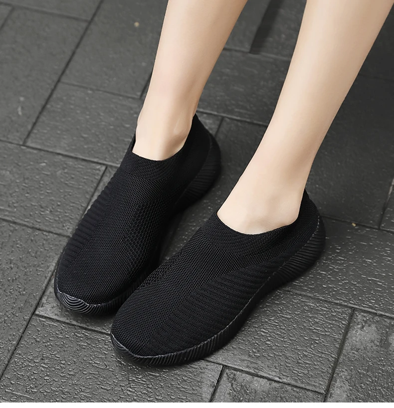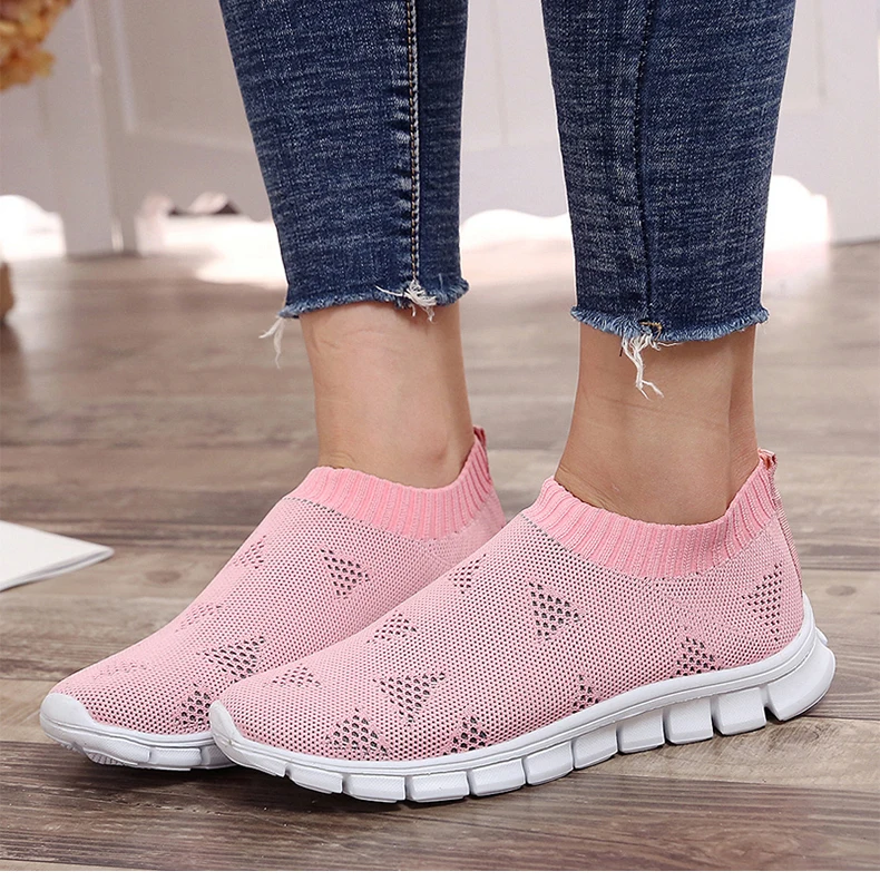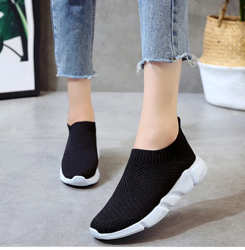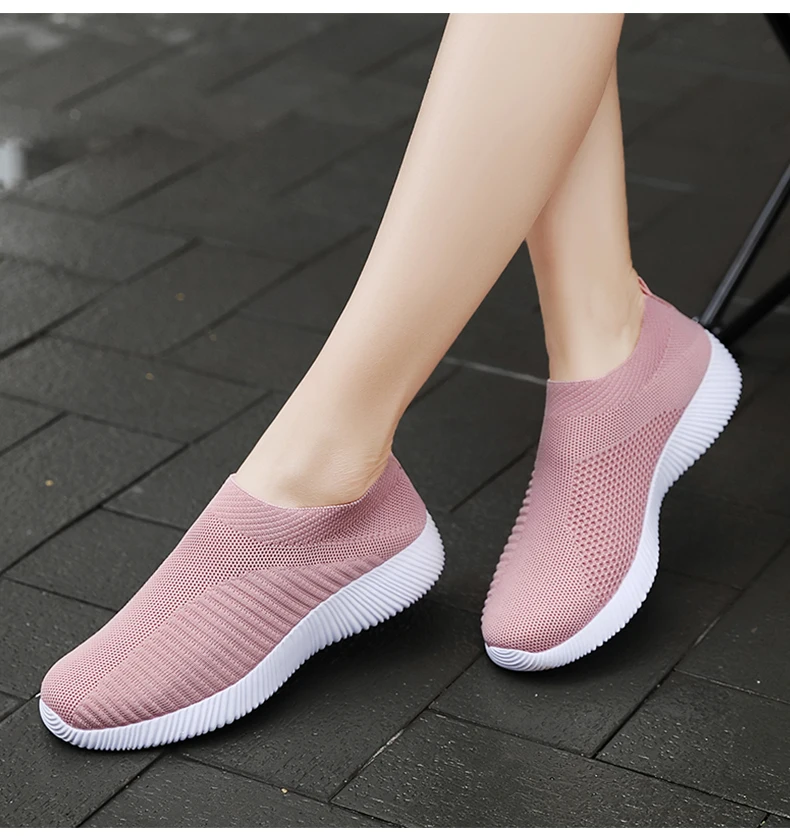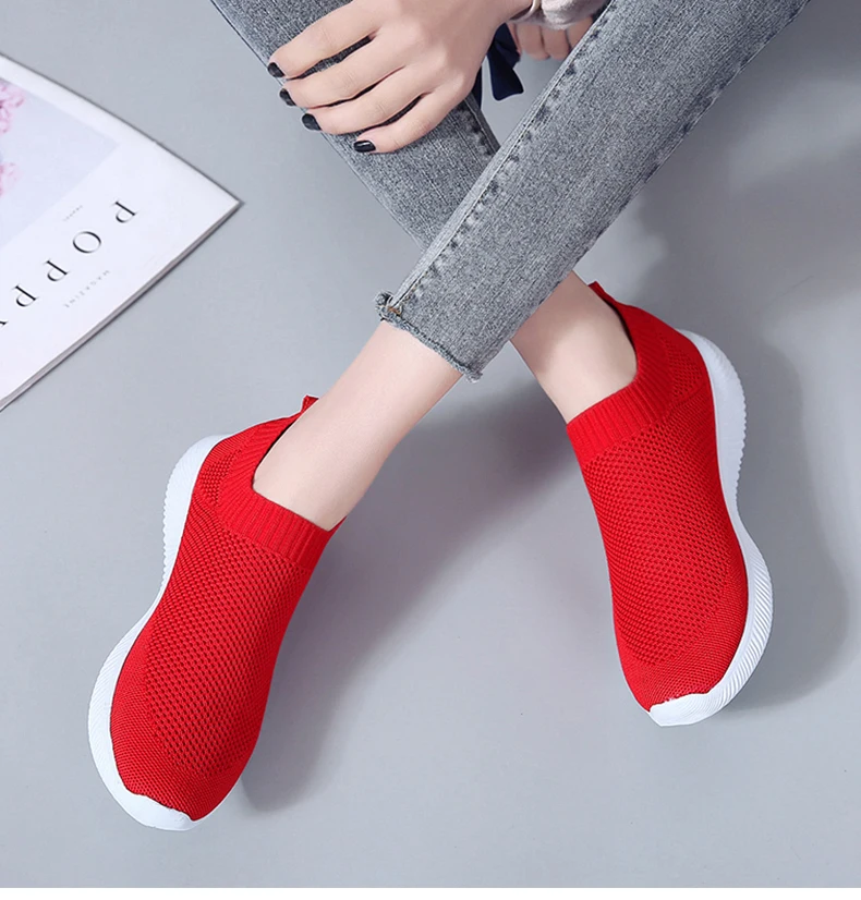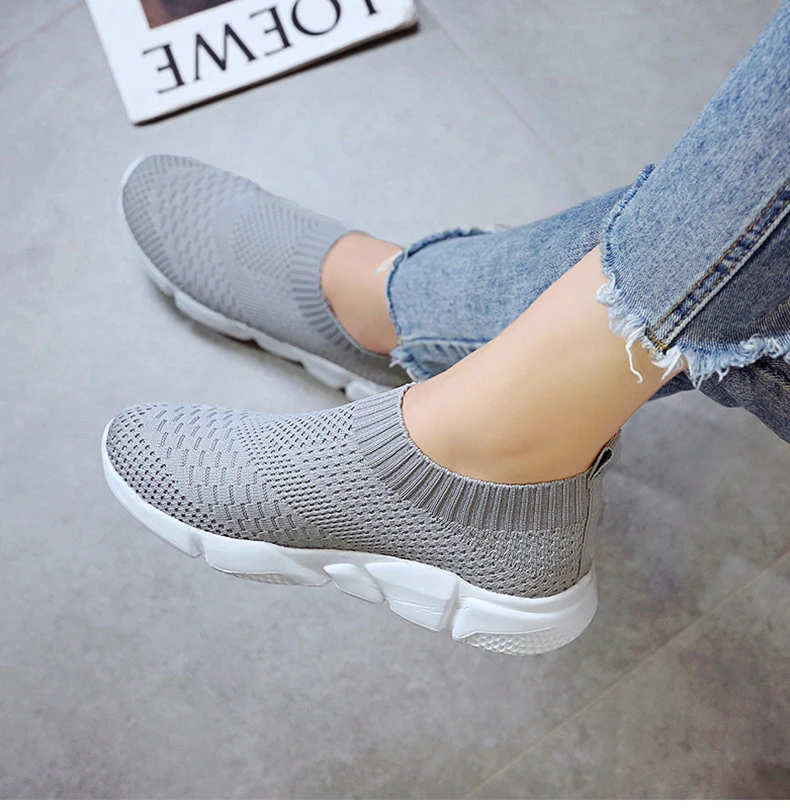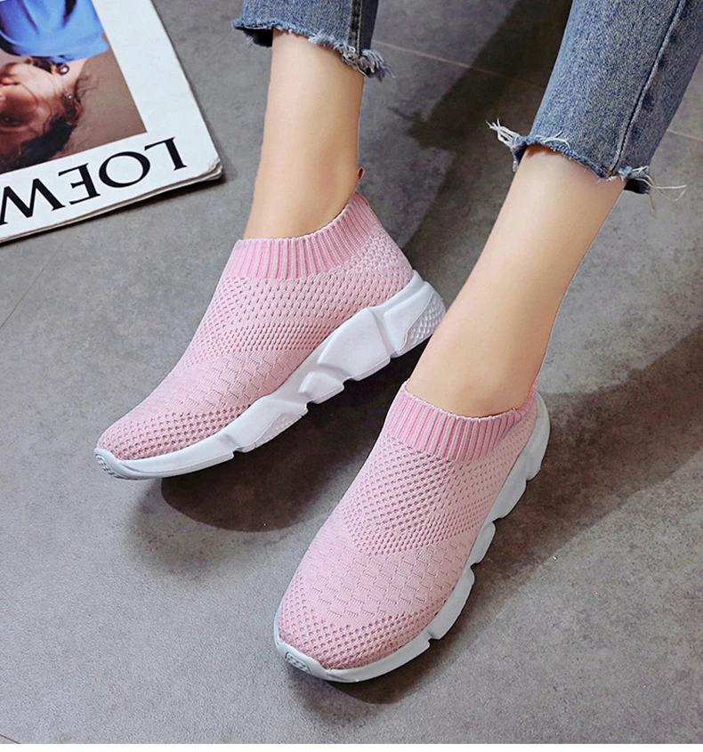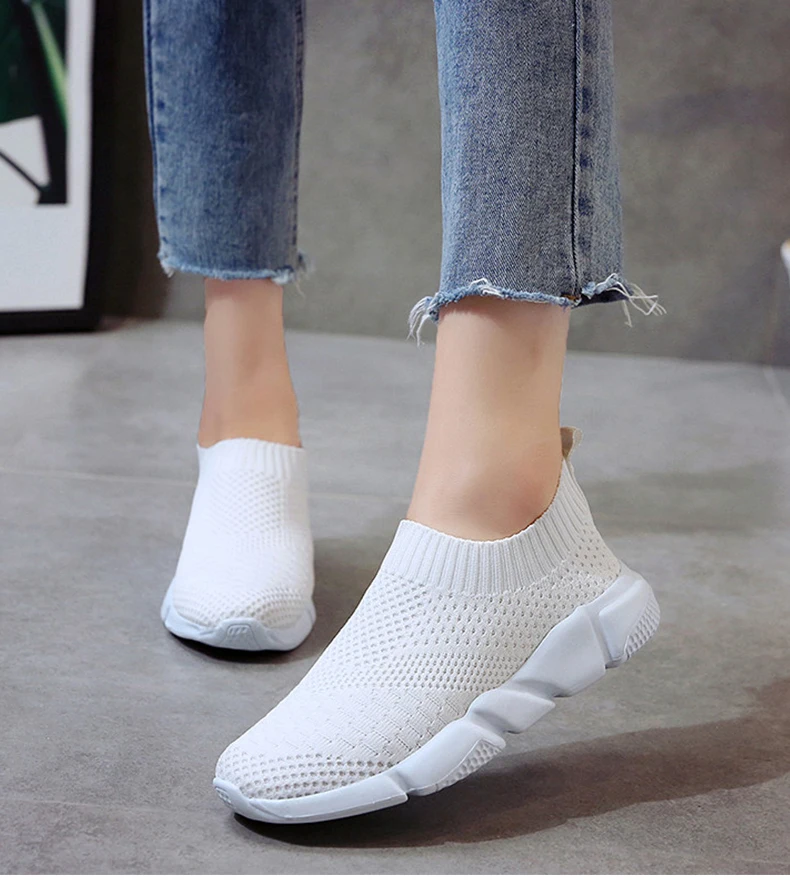 Women Shoes Plus Size Sneakers Women Breathable Mesh Sports Shoes Female Slip On Platform Sneakers White Knit Sock Shoes Casual