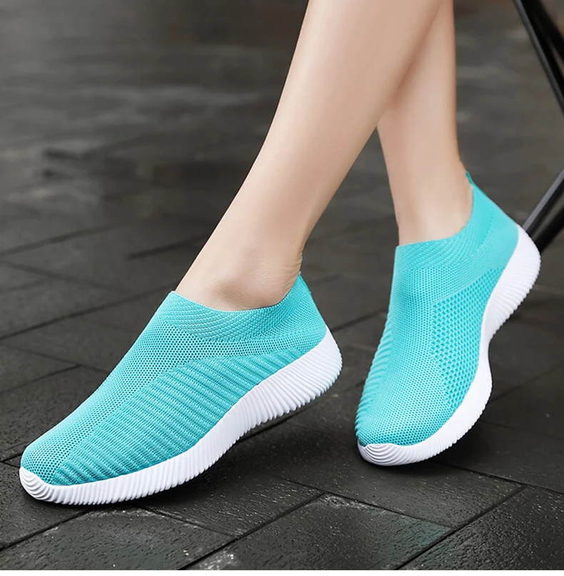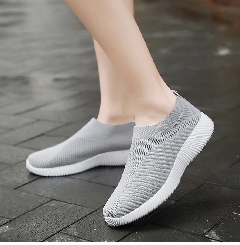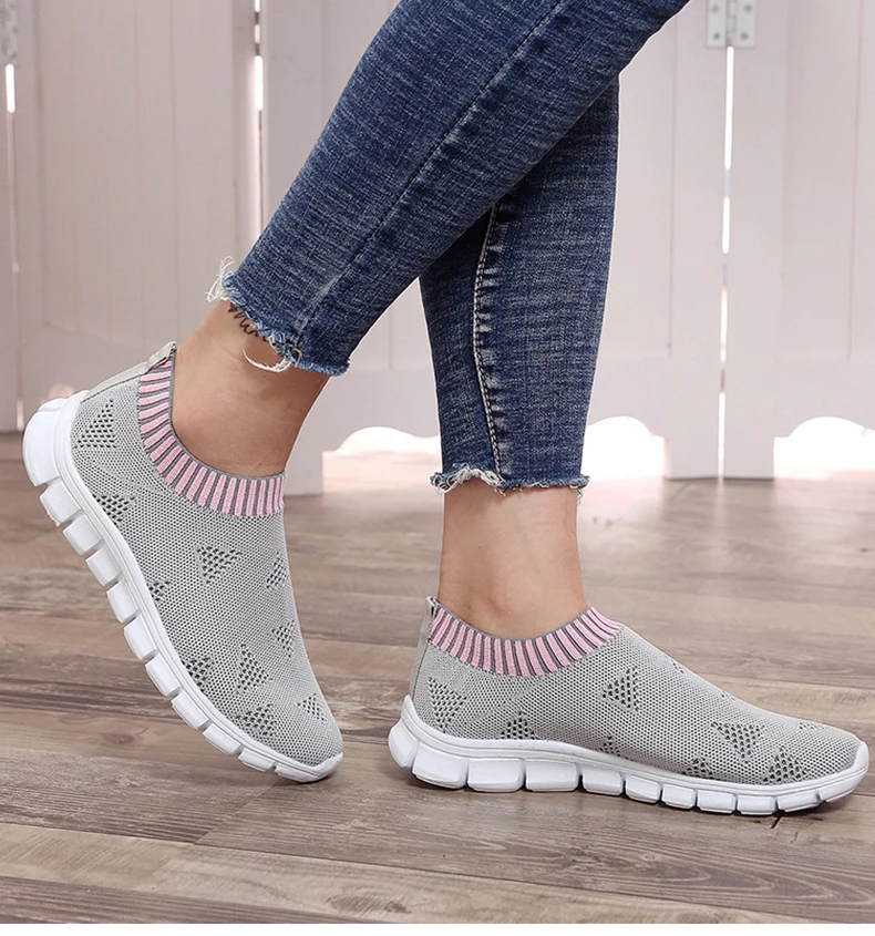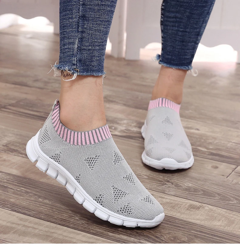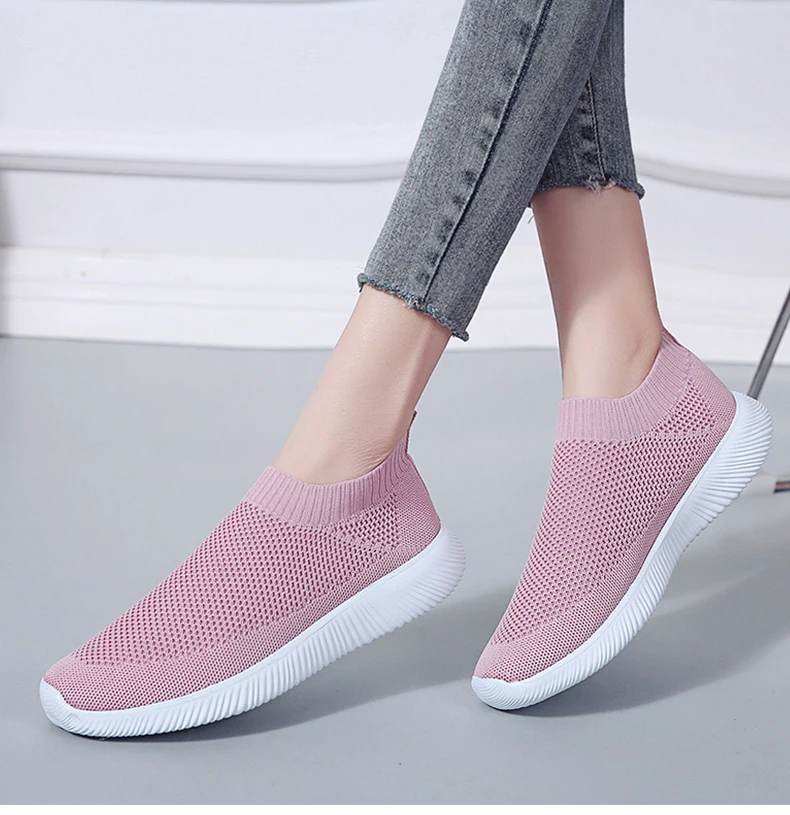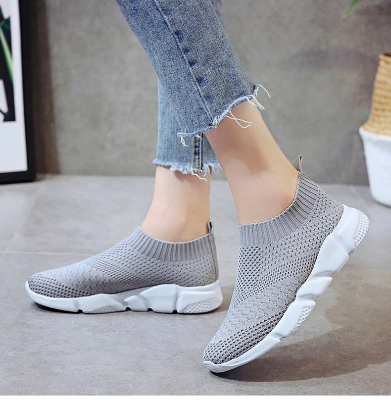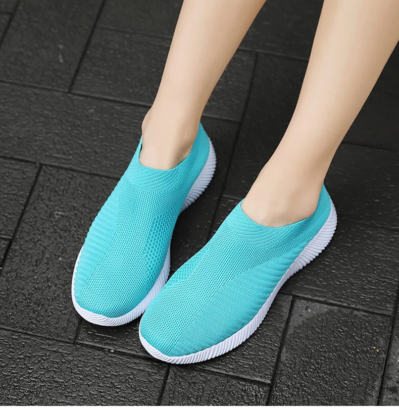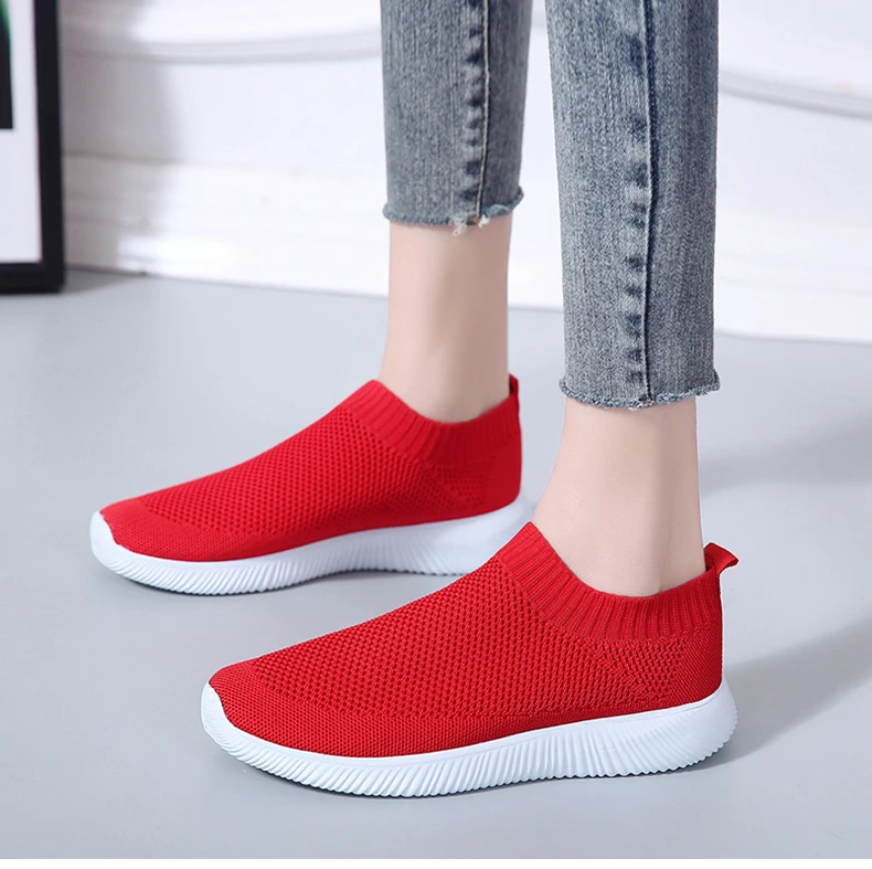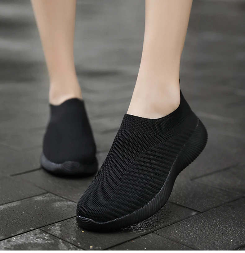 Women Shoes Plus Size Sneakers Women Breathable Mesh Sports Shoes Female Slip On Platform Sneakers White Knit Sock Shoes Casual